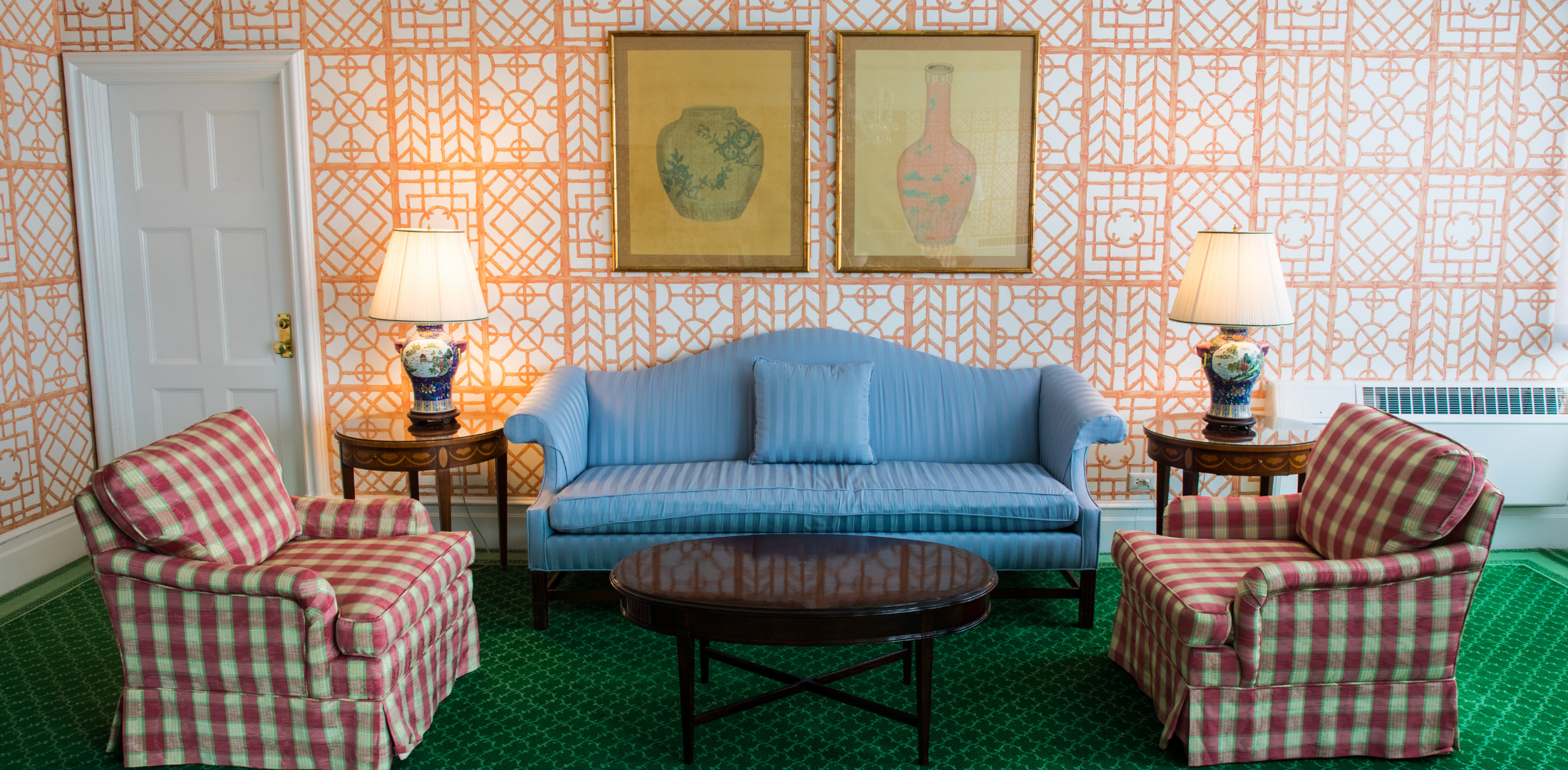 Our Greenbrier Suite sets the stage for extraordinary gatherings for up to 100 guests among the backdrop of iconic Dorothy Draper decor. A world of vivid hues, exquisite florals, and dramatic contrasts, it’s a distinctive look The Greenbrier has carefully maintained for over 65 years and one you won’t find anywhere else in the world.
