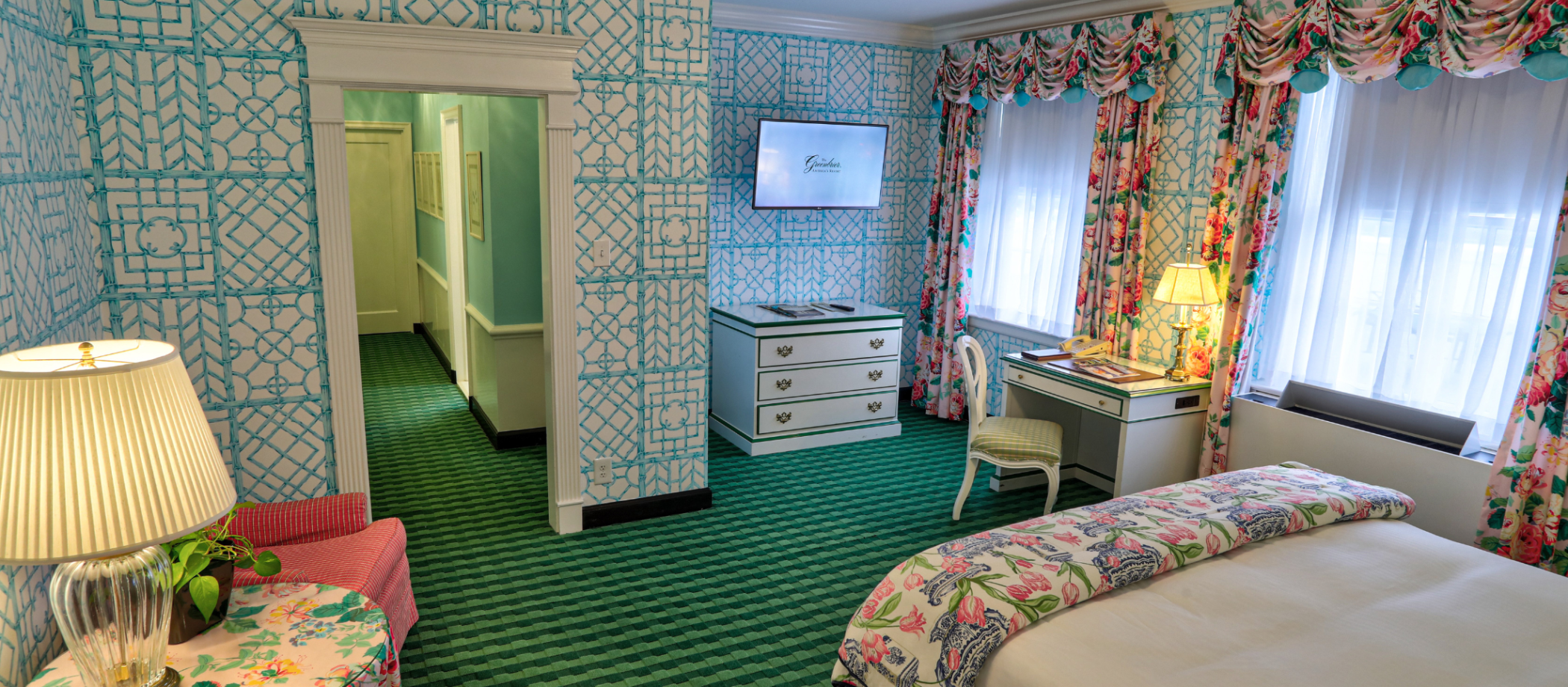 Our North Terrace Suite sets the stage for extraordinary gatherings for up to 20 guests among the backdrop of iconic Dorothy Draper decor. A world of vivid hues, exquisite florals, and dramatic contrasts, it’s a distinctive look The Greenbrier has carefully maintained for over 65 years and one you won’t find anywhere else in the world.
