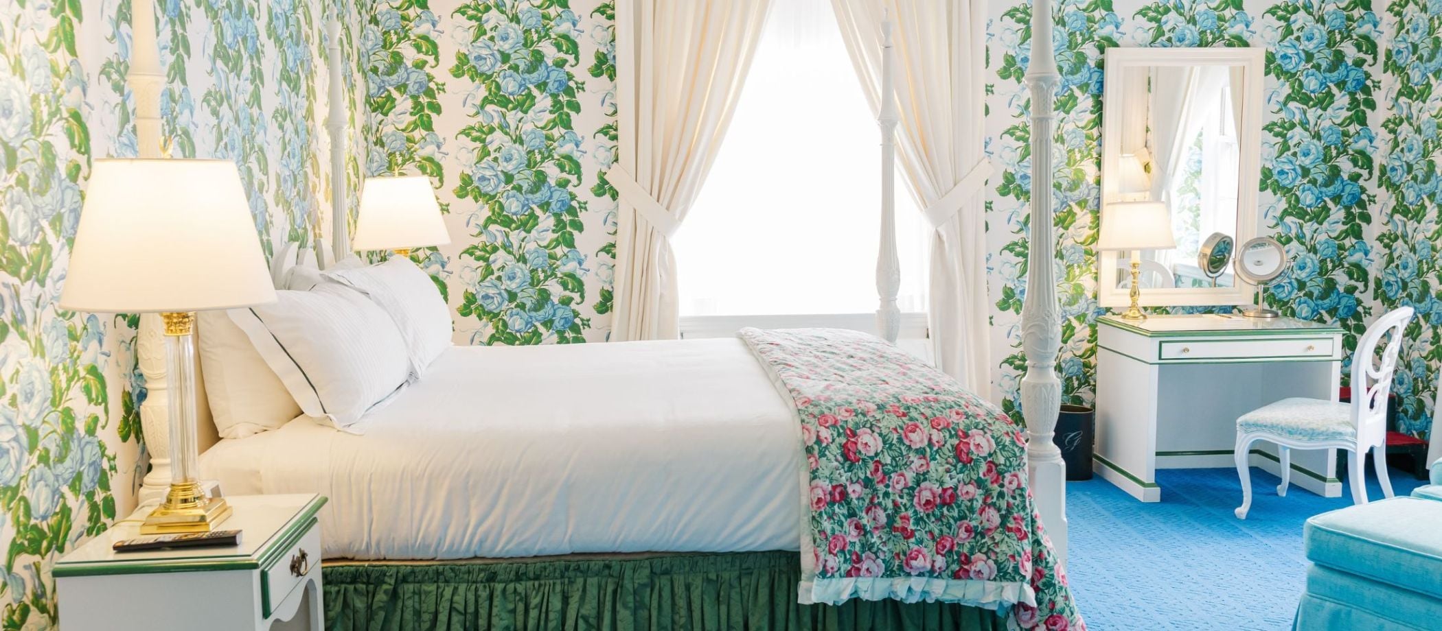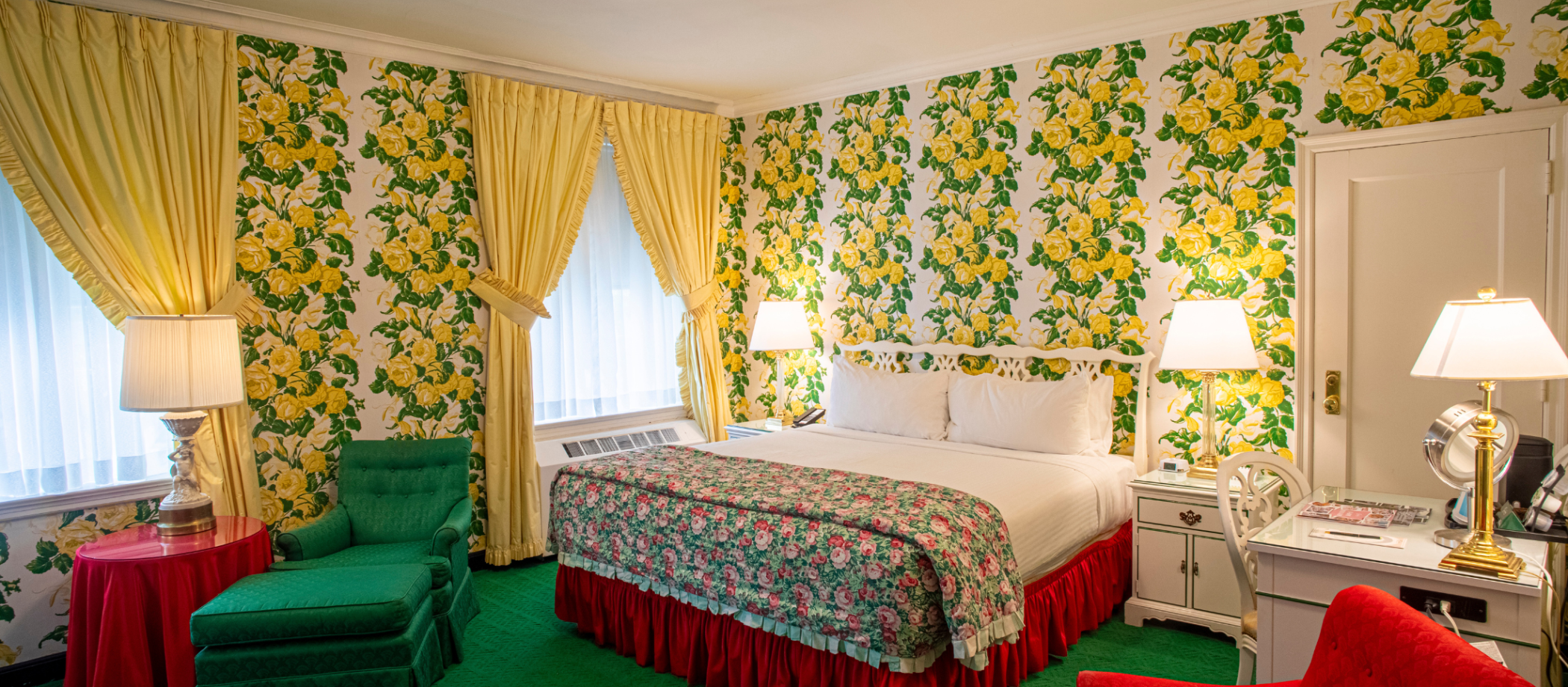Our Traditional Rooms, adorned with iconic Dorothy Draper decor, celebrate the spirit of color. A world of vivid hues, exquisite florals, and dramatic contrasts, it’s a distinctive look The Greenbrier has carefully maintained for over 65 years and one you won’t find anywhere else in the world.